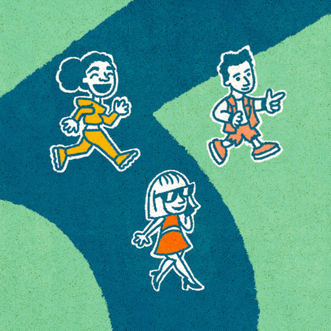 We signified the 3 different ways to get to the café by using color and fun little mascots